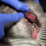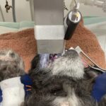 高齢犬が口腔内メラノーマと診断され外科不適応と言われたとのことですが、放射線による治療を希望されて紹介来院しました。