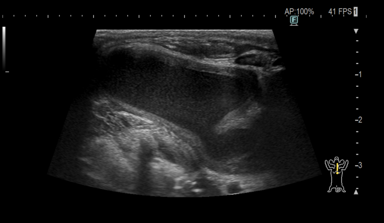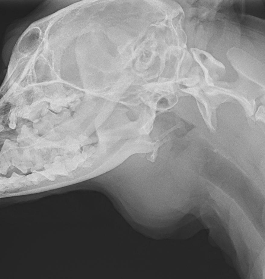 高齢犬の頸部に腫瘤ができており、内部に唾液が溜まっているとのことで紹介がありました。