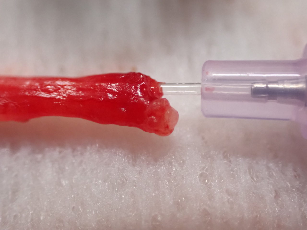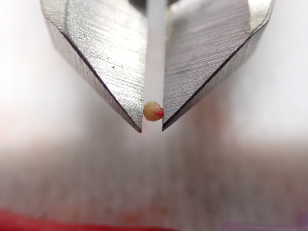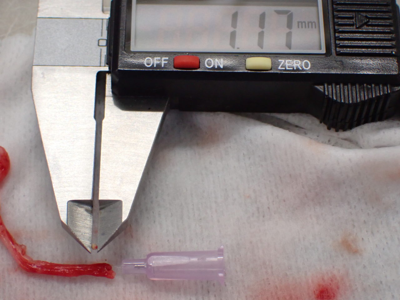 たった1mmの大きさの尿管結石でも猫の尿管を閉塞してしまうことがあります。血液検査、尿検査、超音波検査、無麻酔CT検査などで外科的に対応すべきか?詳しく評価します。閉塞してもすぐには腎盂の拡張はそれほど顕著ではありませんし、片側のみであれば血液検査に異常値が検出されないこともしばしばです。マイクロサージェリーで短尺ステントと尿管新吻合術で対応しました。通常はシュウ酸カルシウムであり溶解できないので非常に厄介です。