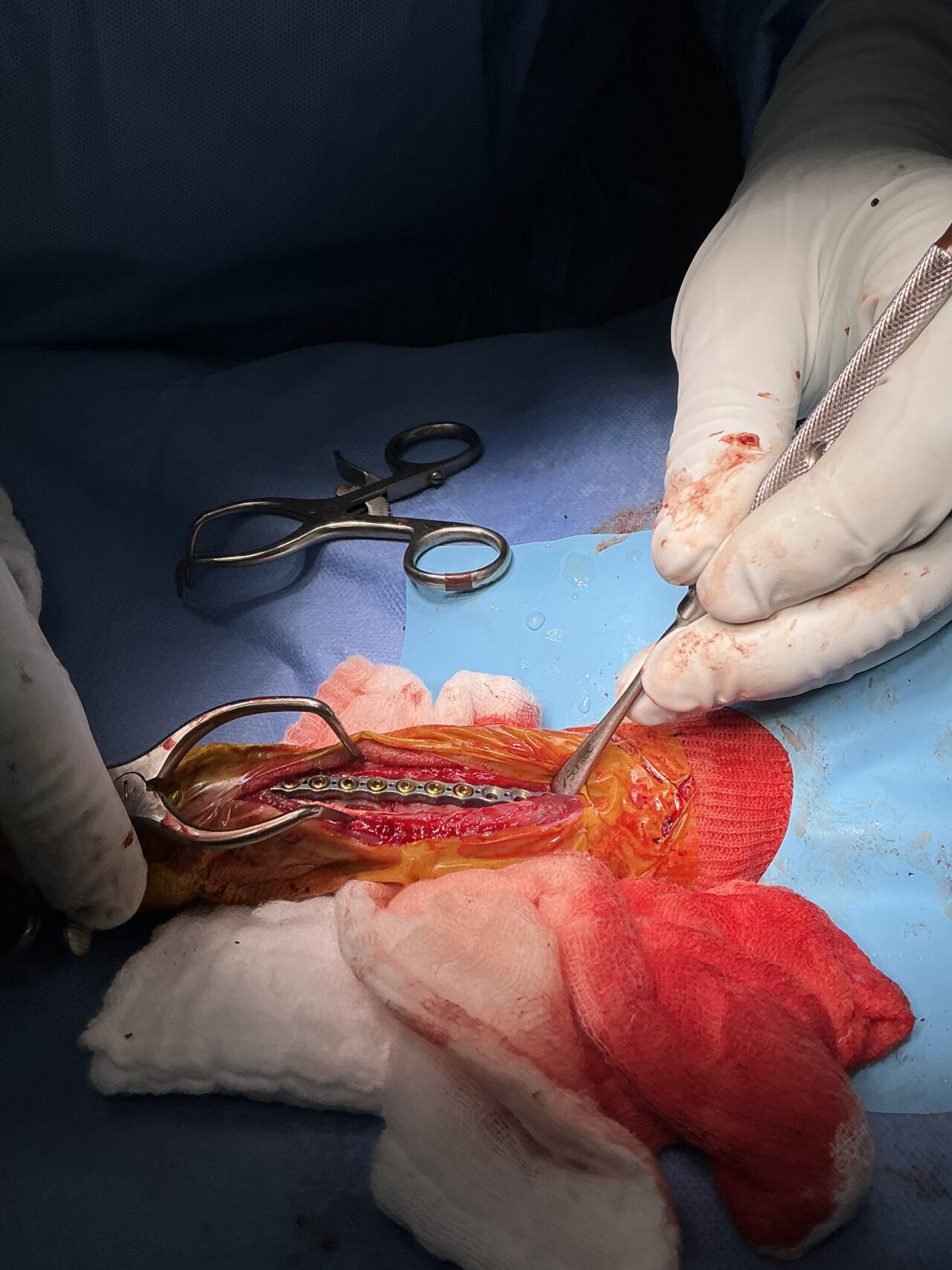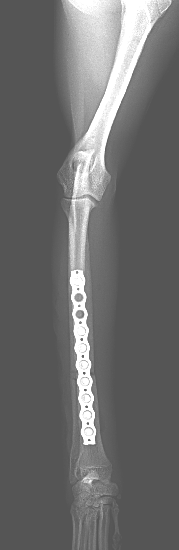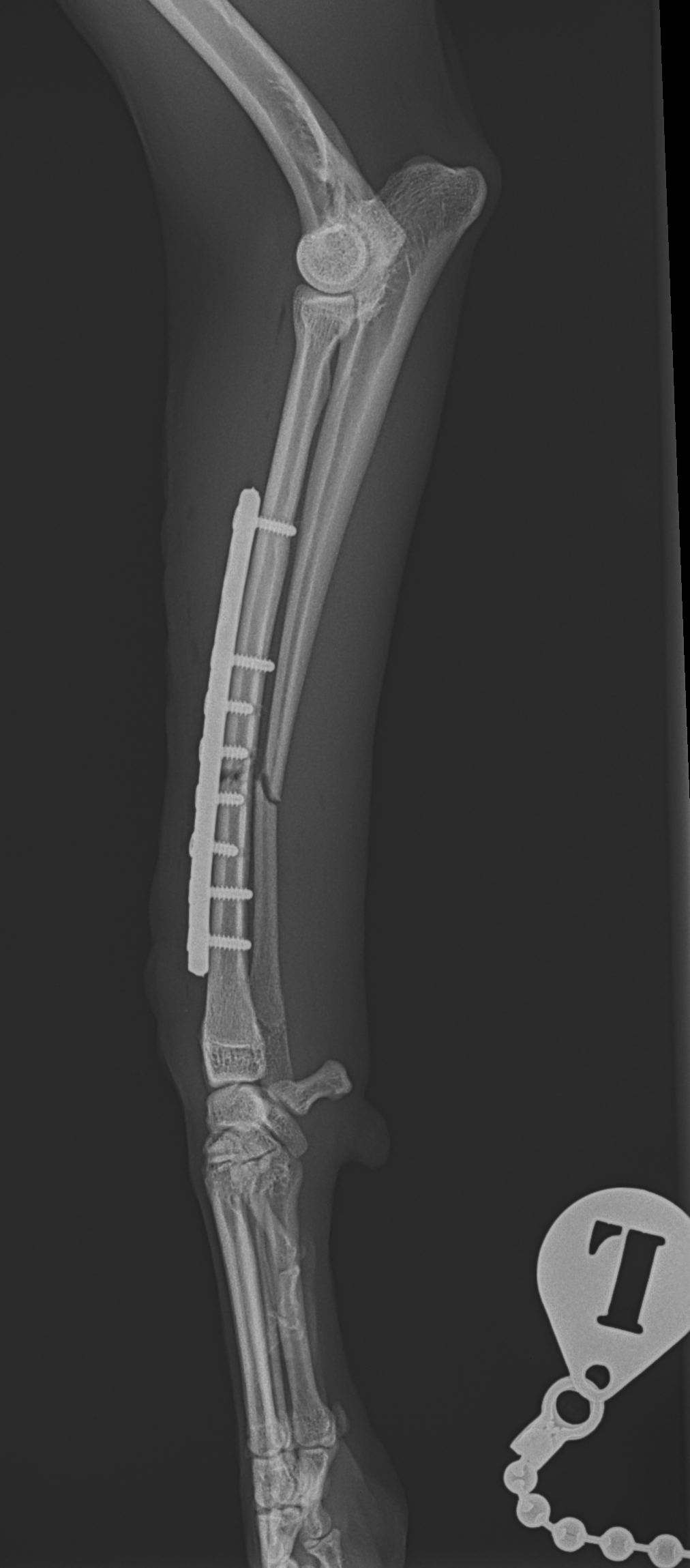 橈骨固定術 #267 Toy Poodleの橈骨固定術を実施しました。ご家族の腕から着地した際に骨折したそうです。2.0mm Titanium Locking Plateで固定術を実施しています。しばらくは安静が必要です。 症例カテゴリー 放射線治療整形外科軟部組織外科脳神経外科内科腫瘍外科救急・集中治療リハビリテーション科腫瘍内科内視鏡科脳神経科呼吸器外科中医・漢方猫の腎移植循環器科