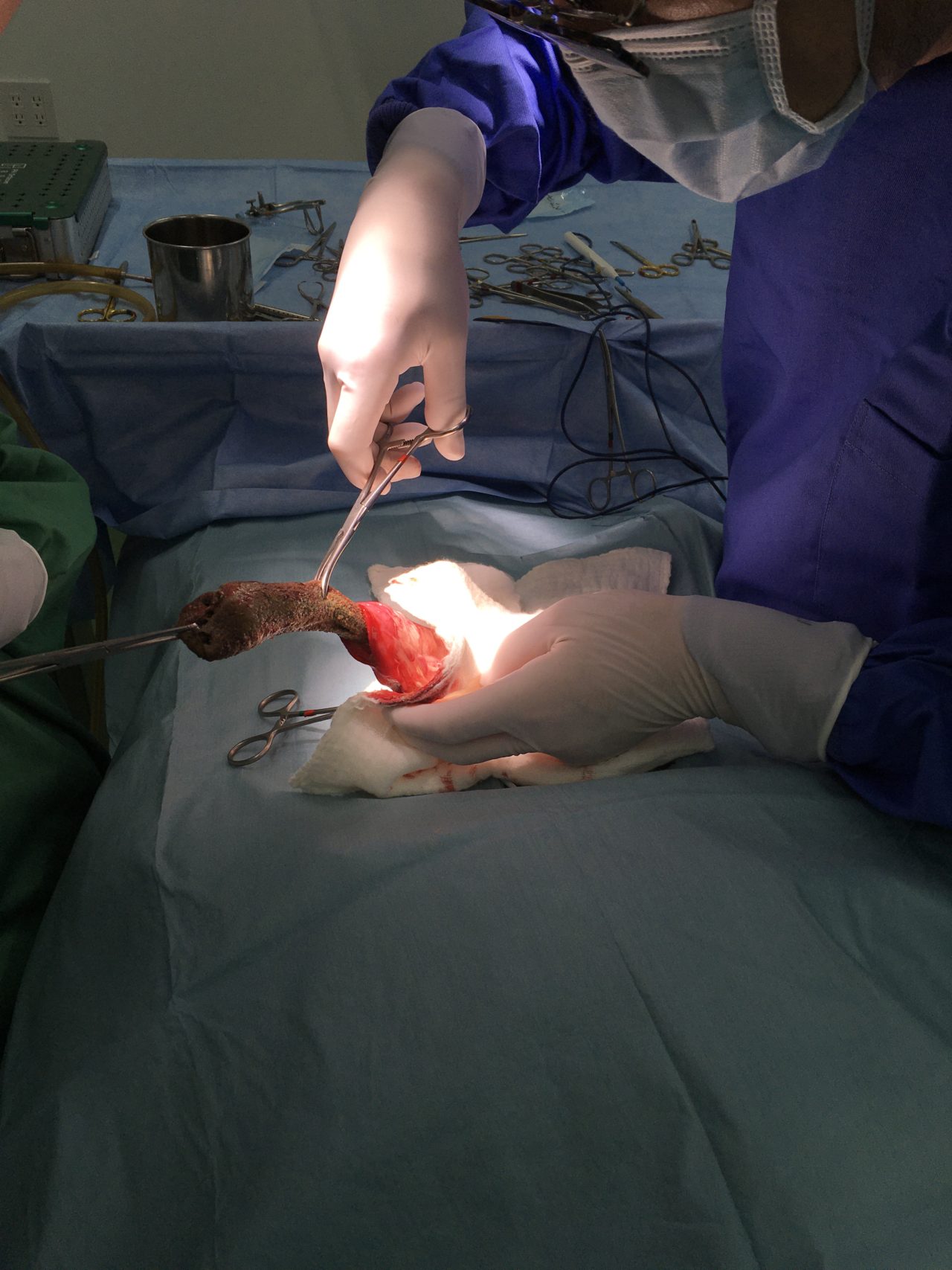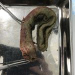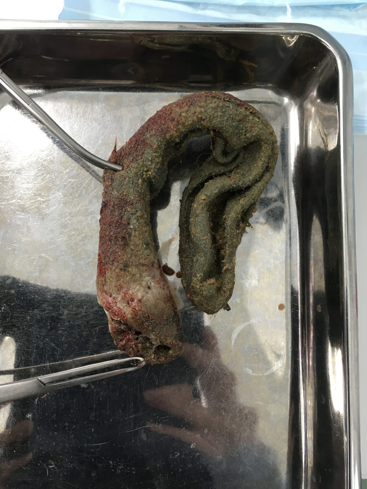 新型コロナの影響で外出の自粛からストレスが溜まっているのは人間だけでは無いようです。催吐処置、内視鏡下異物摘出、胃切開術、腸切開術とほぼ毎日、何らかの消化管内異物の患者さんが紹介されて来ます。普段は決してこんなに多くはありません。今週は1日2件、内視鏡下で異物を除去した。という日もありました。ストレスが引き金となって普段は口にしないものを誤飲をしてしまうのでしょうか?本当の原因はわかりませんが、人間社会が閉鎖された空間 ”Stay at Home”となり、このストレスが動物達にも連鎖しているのでしょうか?予防のためにも誤飲してしまう可能性のあるものは動物の近くに置かない方が良いでしょう。写真のワンちゃんは靴下を誤飲してしまい腸閉塞となり緊急手術を行った患者さんです。犬猫は我々のように言葉を持たない代わりに、人間が感じているストレスを本能的にキャッチするのでしょう。我々、人類もこのような感染力の高いウイルスとの闘いは、はじめてのことであり、なるべくストレスを抱えないで精神状態と健康状態を良い状態にキープできるよう、お互いを思いやる気持ちを持って、それぞれが自分自身をコントロール出来なければなりません。
