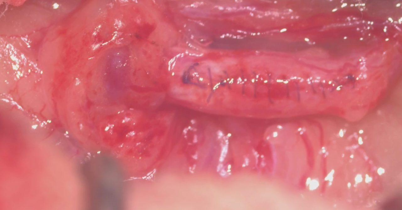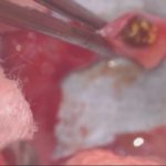 食欲にムラが出てきた。とのことで高齢のワンコがかかりつけ医を受診されました。血液検査で腎数値が軽度上昇していることから腹部のエコーで精査を行ったところ尿管結石が見つかったそうです。”犬の尿管結石”は猫に比べると診断する頻度は少ないのですが、CTで確認すると結石が尿管を閉塞し尿管拡張が確認されました。顕微鏡下で閉塞した結石を除去しました。犬は尿路感染も併発していること多いので尿の培養検査も行います。しばらくは輸液をしながら腎機能のモニターを行います。高齢ですが頑張ってくれました。