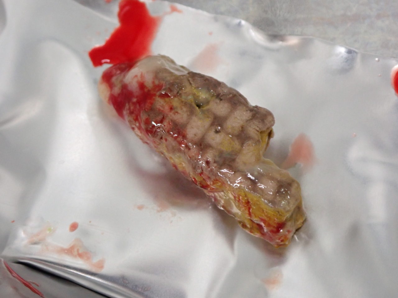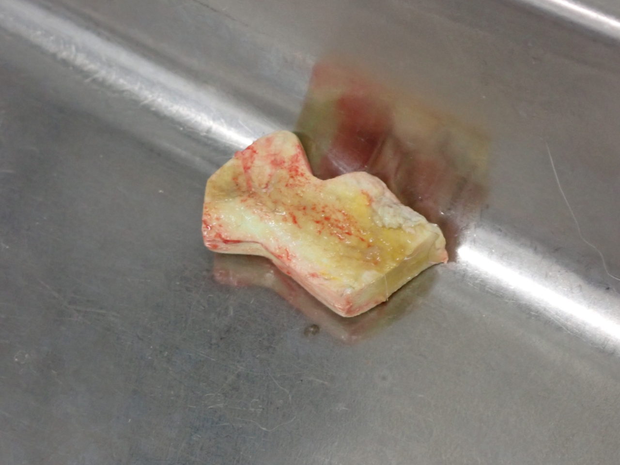 猫と生活している方はジョイントマット(スポンジ状)に気をつけてください。猫は噛み心地が良いのか噛みちぎって食べてしまうようです。別々のご家庭で生活している2頭の猫さんが腸閉塞を起こしたとの事で緊急で腸切開を行いました。偶然にも2頭ともジョイントマットの切れ端が閉塞を起こしていました。この事故は繰り返すかもしれないので念のためジョイントマットは撤去するか、猫のいないところで使用した方が良さそうです。