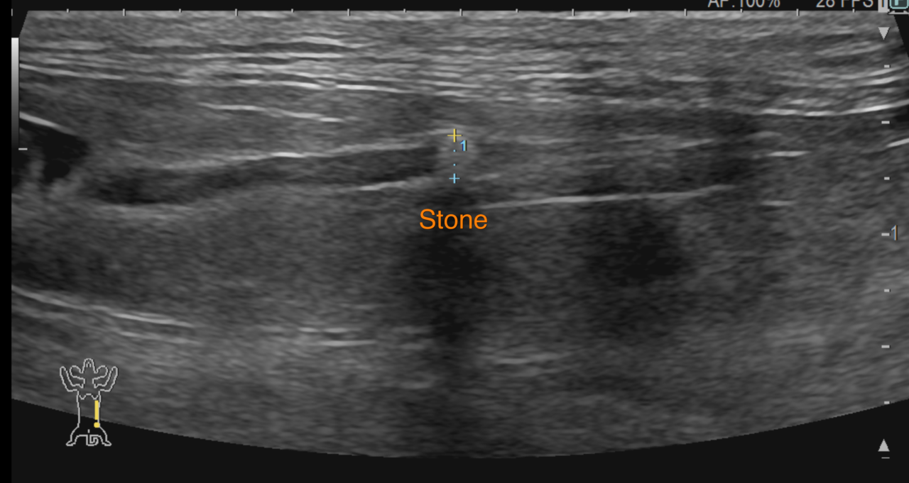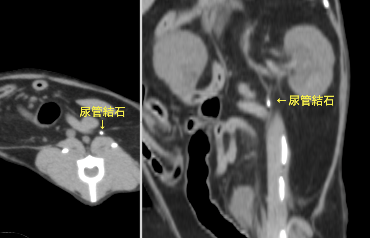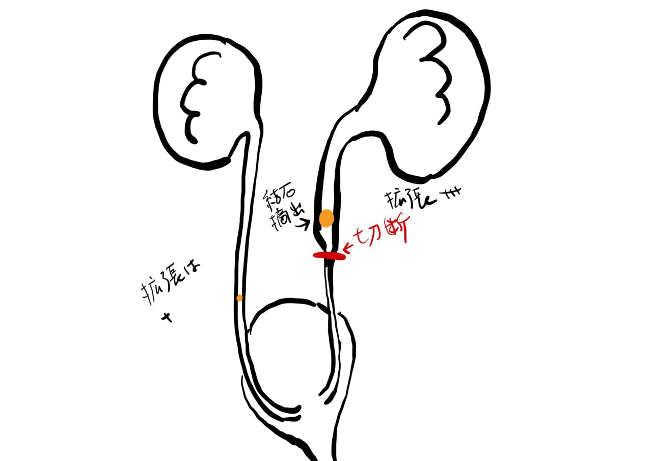 猫さんの尿管に結石がつまって腎臓の数値が上昇してきており、なんとかしてほしいと主治医から連絡がありました。マイクロサージェリーで結石を摘除し、尿管膀胱新吻合術を行いました。尿管は結石により炎症を起こしていたので術後の吻合部位に狭窄が生じることがあります。今回は短尺型尿管ステントを留置しています。これでたくさんおしっこが出るようになります。