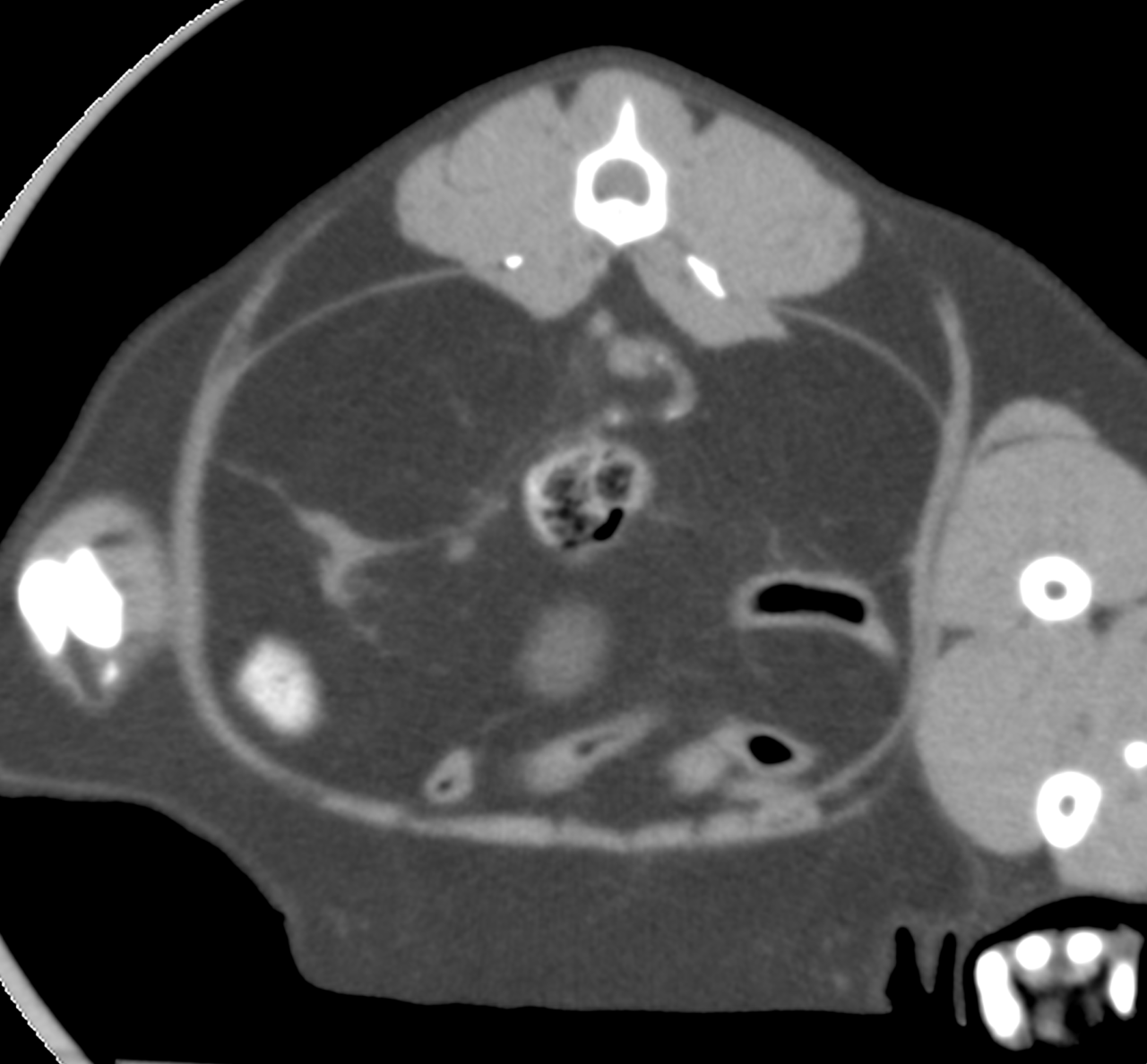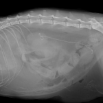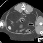 10歳の猫ちゃんの尿管閉塞を外科的に対応して欲しいと、主治医のリクエストがあり対応しました。無麻酔CTで結石の位置、大きさ、左右、個数など詳細を確認しました。右の腎盂拡張、尿管拡張、尿管結石が確認されました。顕微鏡下で右の腎盂〜尿管〜膀胱内に尿管ステントを留置しました。尿管結石の影響で広範囲に尿管の上皮に炎症が起こっています。その結果、尿管壁に線維化、狭窄、そして尿管の蠕動運動の機能低下などが起こります。ステントを入れて尿路を確保したので徐々に腎数値も改善してくるでしょう。また術後にはプレドニゾロンを使って尿管の炎症を抑えることも有効です。