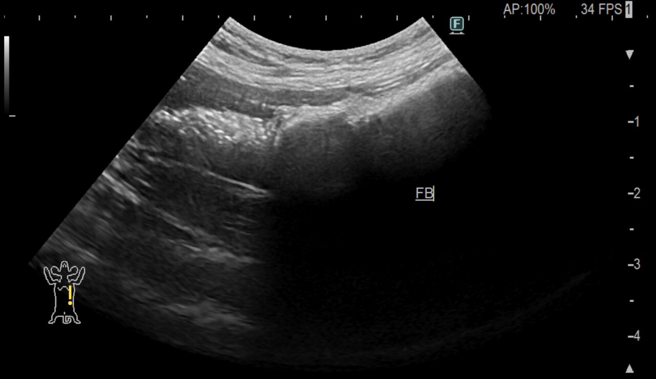 エコー検査を行うと小腸の空腸領域で異物が閉塞していることが確認できました。