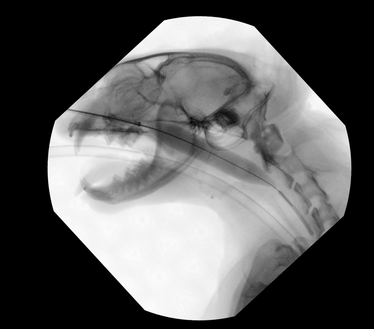 バルーン拡張術の概要は、バルーンカテーテルを用いて狭窄部を拡張し、通気を改善する治療法です。適応症例としては内科治療(抗炎症剤、抗生剤)で改善しない鼻咽頭狭窄です。エックス線透視装置を用いて、狭窄部位にバルーンを誘導し、拡張、一定時間(15分程度)保持します。※今回は7気圧で拡張