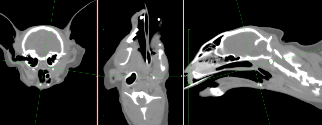 鼻咽頭狭窄とは?鼻咽頭(鼻腔と咽頭の間の空間)が狭窄し、呼吸困難や慢性的なくしゃみ、鼻汁、いびき、喘鳴などを引き起こす疾患です。原因は先天性異常、慢性炎症(ウイルス性鼻気管炎や真菌感染症)、外傷、術後の瘢痕などが考えられます。