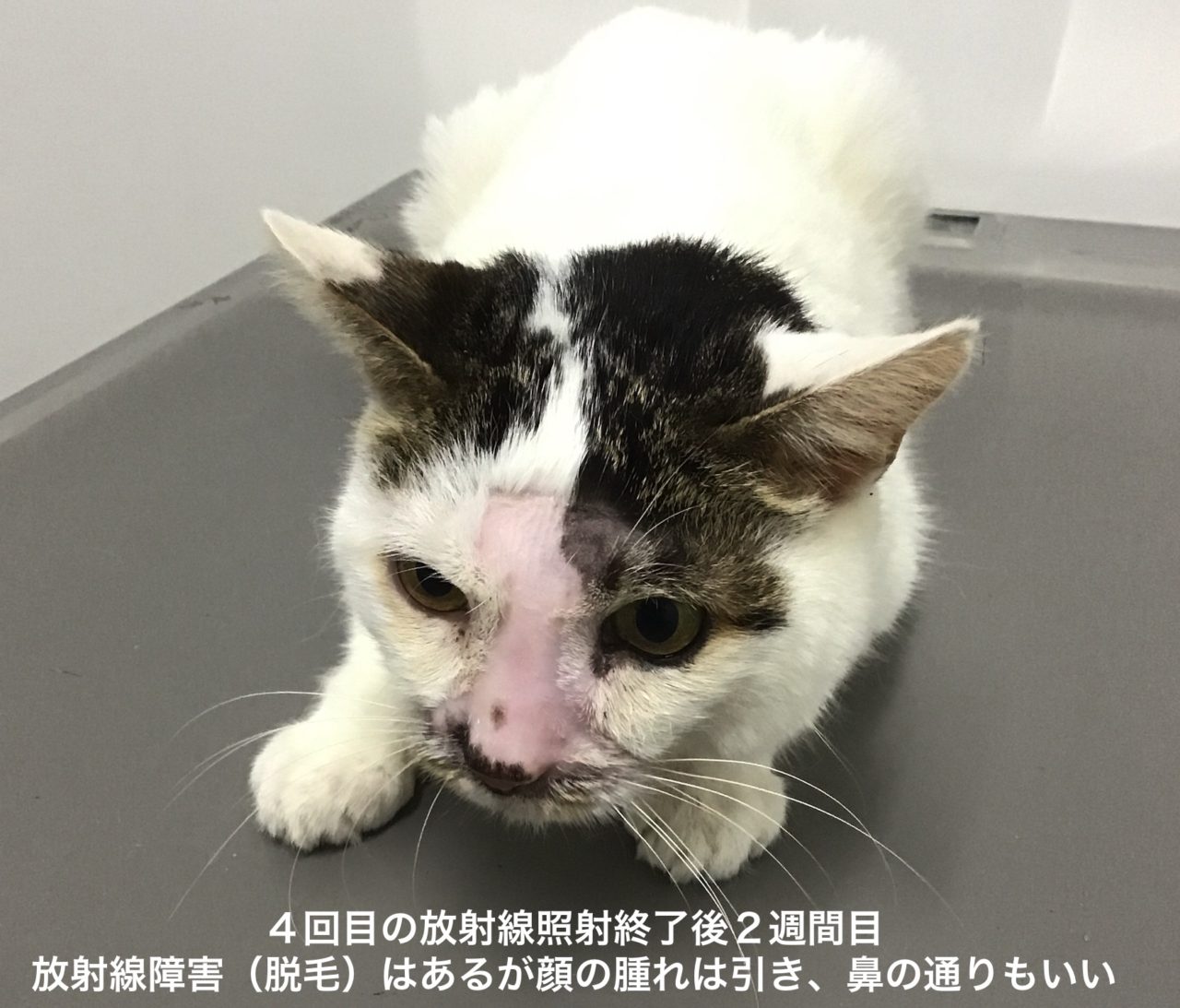 初回の放射線照射の翌日から目に見える改善があり、1週間後の第2回照射時には鼻呼吸ができるようになりました。