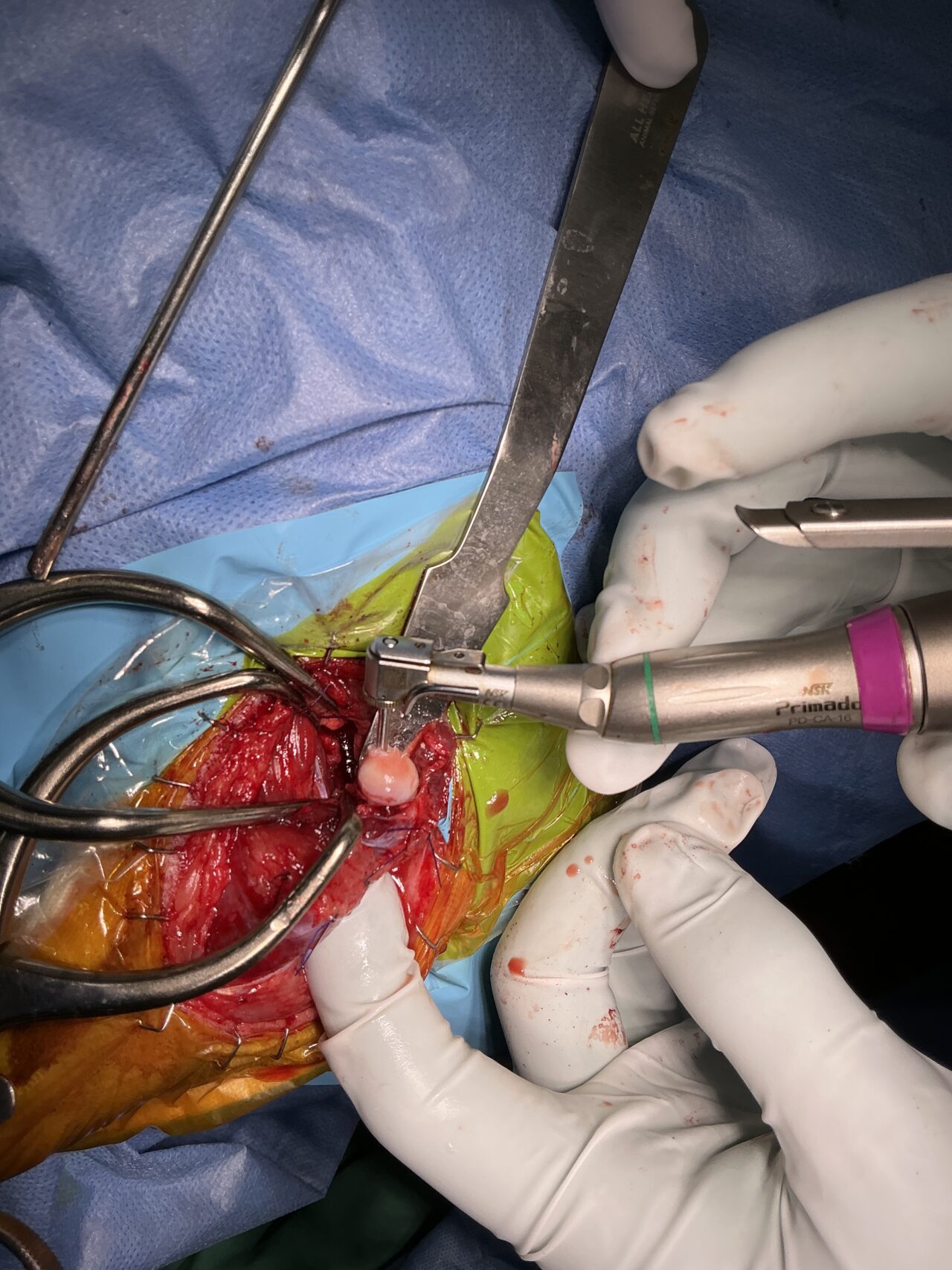 室内で転倒してから股関節脱臼とのことで小型犬が紹介受診されました。失われた股関節機能をBUSTOR(バスター)で再建しました。しばらくは厳重な安静が必要です。※BUSTORとはBullet-Shaped Toggle Rodのことです。