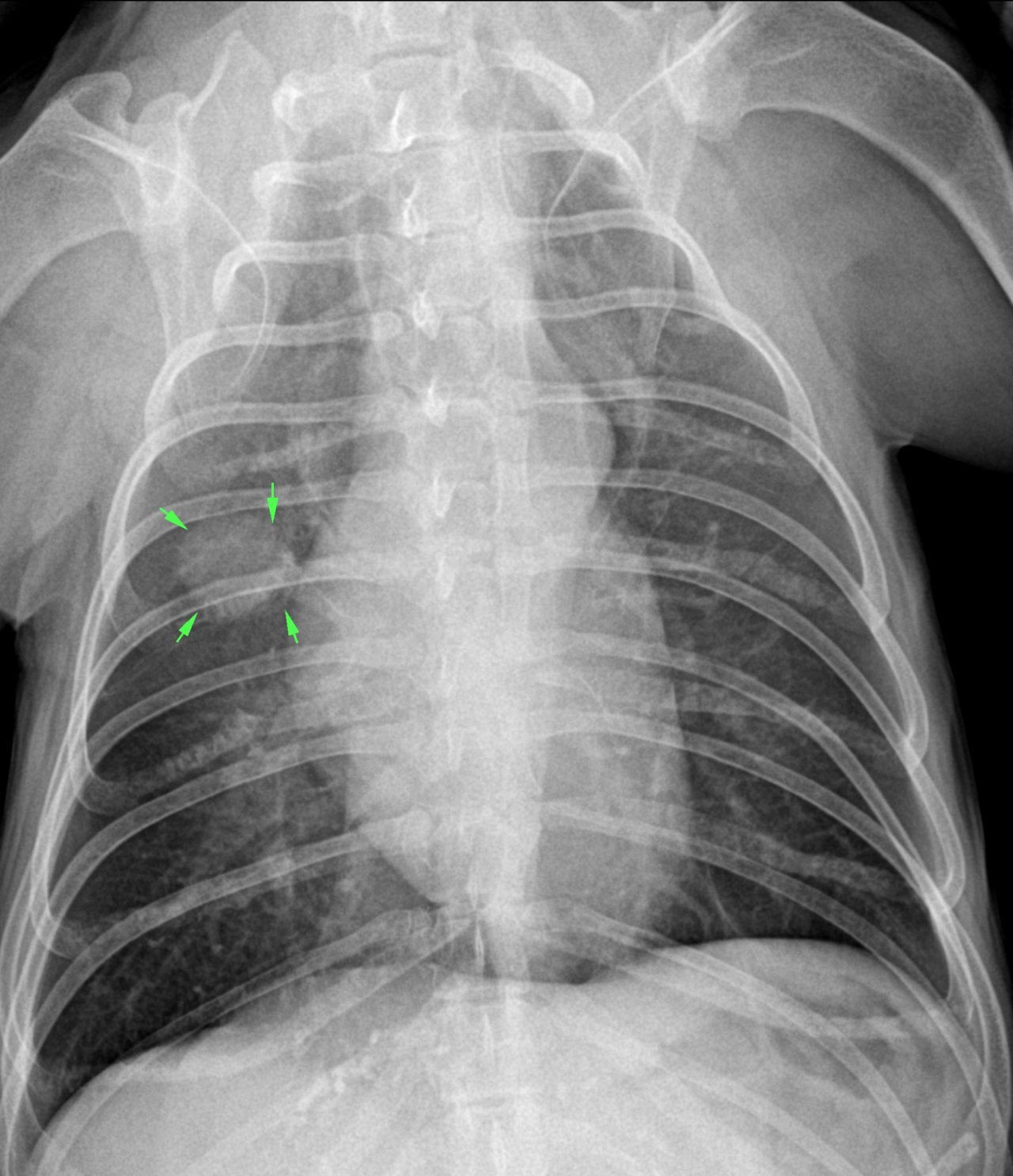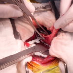 主治医の勧めにより高齢のわんこ(13歳)が健康診断で胸部エックス線検査を行ったところ、肺に腫瘤が見つかったそうです。現在、患者さんに呼吸器の臨床症状はありません。CT検査で全身スクリーニングを行い手術適応か?判断して欲しいとのことで来院されました。その他、転移などは見つからなかったので右肋間開胸術でTAステープラーにより右前葉の切除を行いました。病理では原発性肺がんと診断されましたが、完全に切除されており予後は良好と考えられます。高齢のワンコですがよく頑張ってくれました。これからも長生きしてもらいたいと思います。