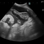 本来胆嚢があるべきところには胆嚢が確認できず、下腹部に以上なエコー像が複数確認でき、胆嚢粘液嚢腫が破裂したと判断しました。