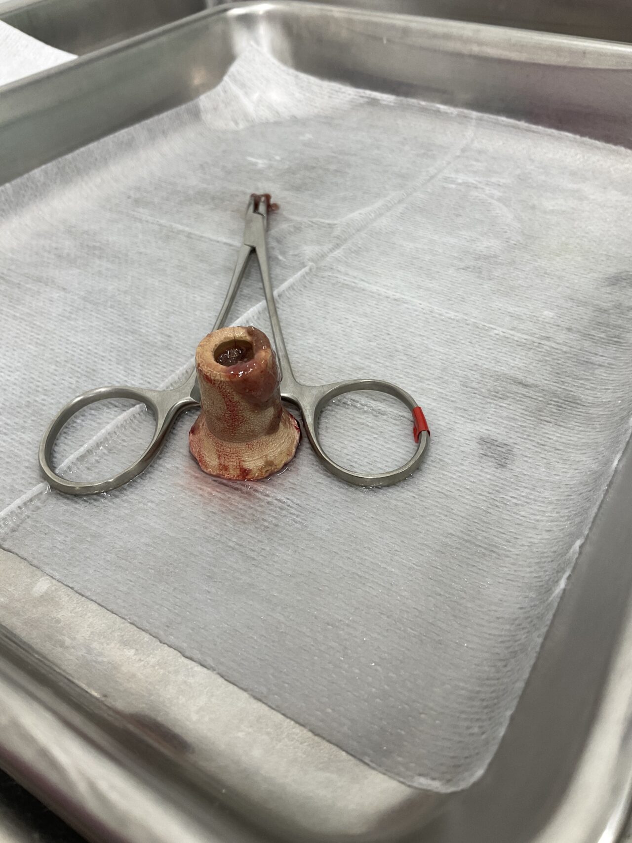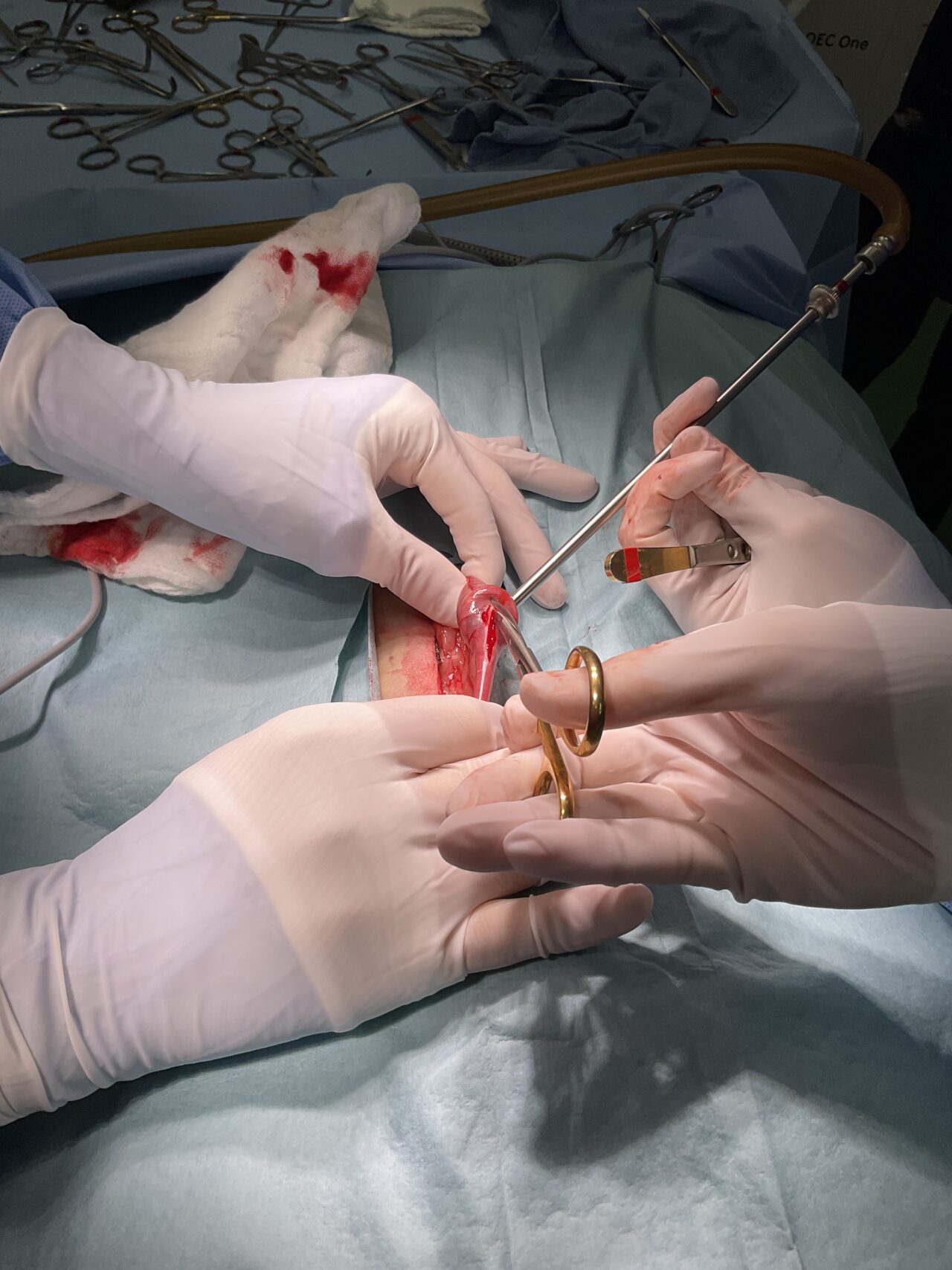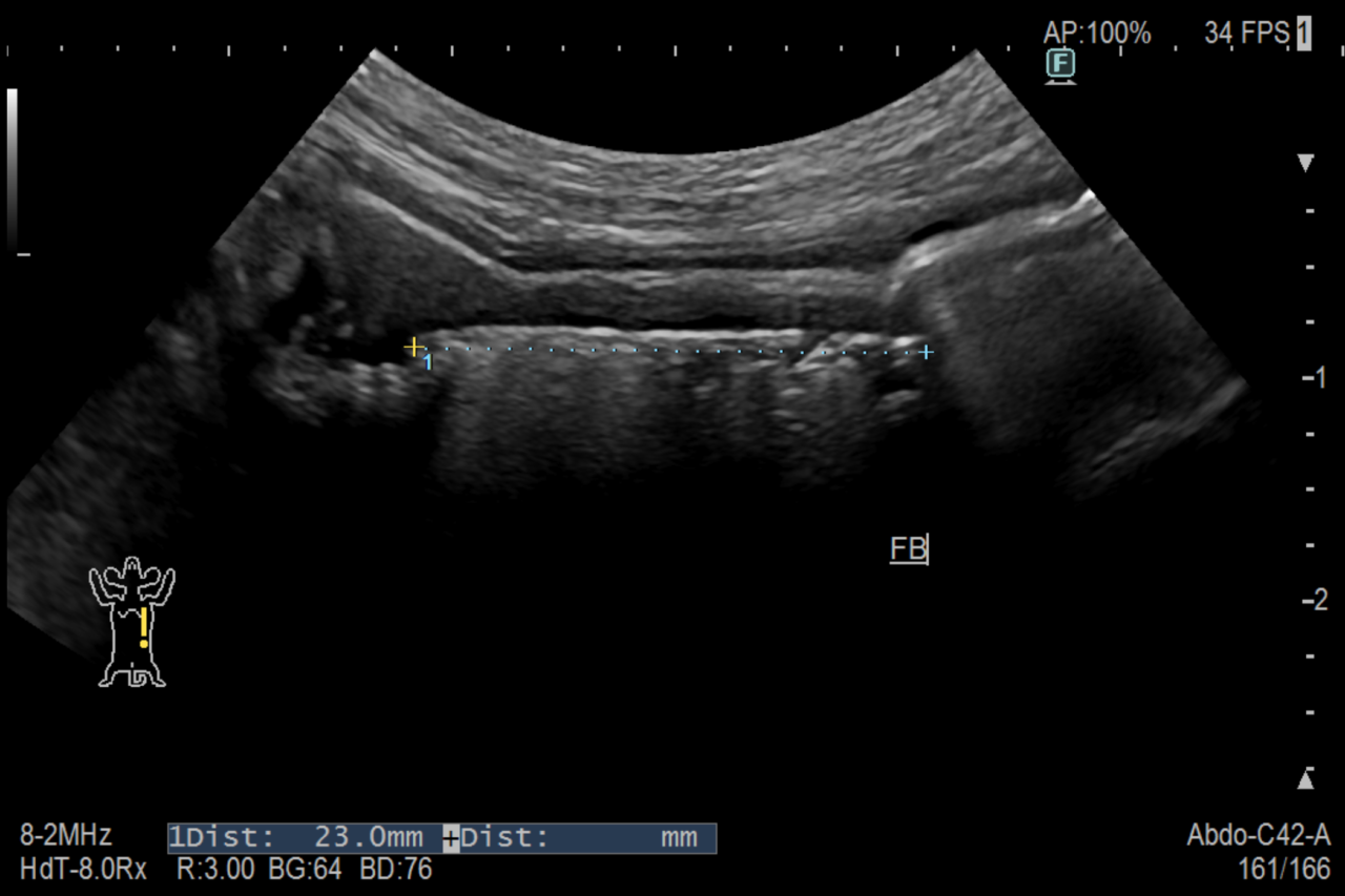 腹部エコーで小腸内に異物を認め、腸閉塞を起こしていると診断してすぐ手術を行いました。