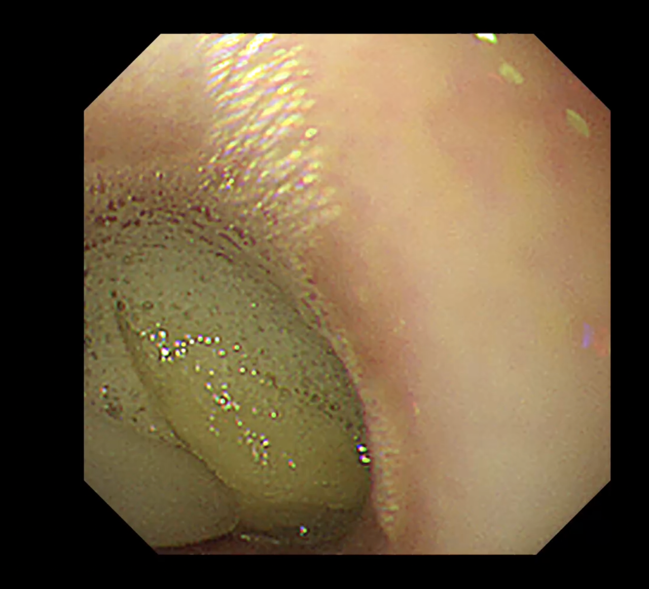 - 処置:内視鏡ガイドでストマックチューブを用いて慎重に胃内に落とし込む。