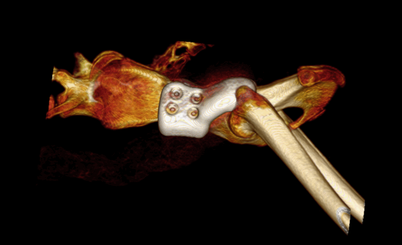 股関節形成不全に罹患した犬・猫に対する最新の股関節形成術” 3DHip”のご紹介です。今回、体重5.8kgの小型犬に対し、3DHip(チタン製カスタム棚形成術)を実施しました。この技術を2024年末にオランダ・ユトレヒト大学で研修を受けております。