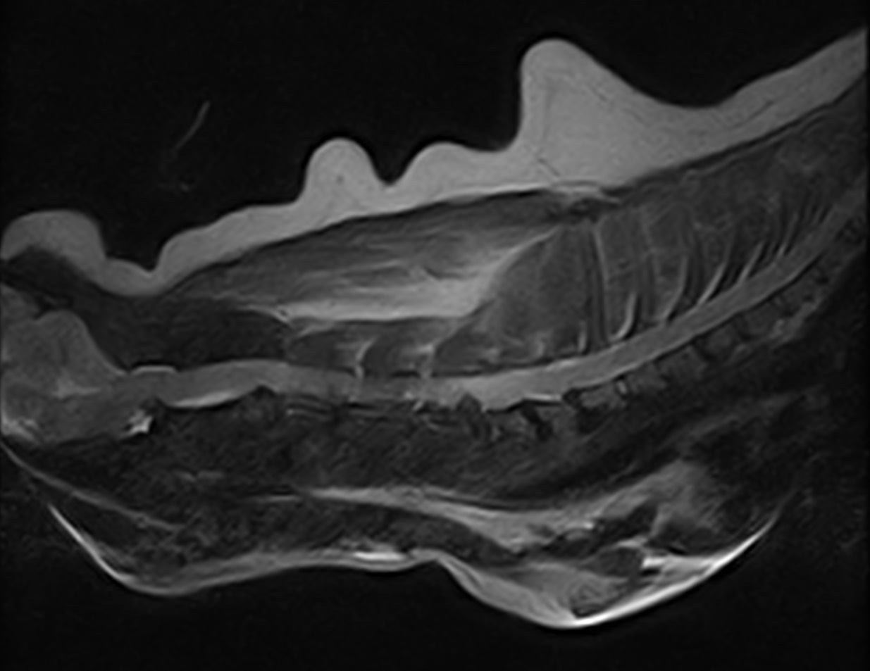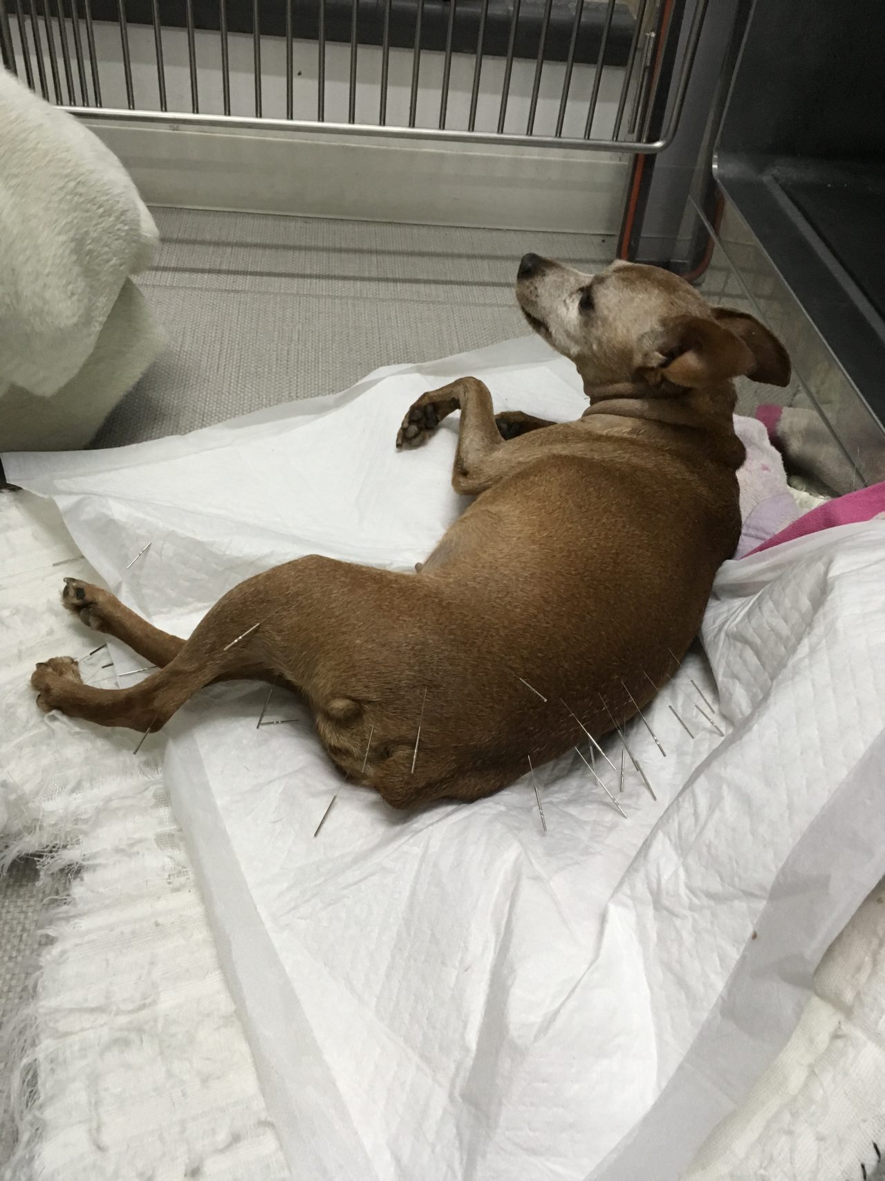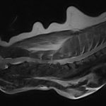 高齢のミニピンさんが突然、頸を痛がり四肢不全麻痺になったとのことで主治医より検査と治療目的で来院しました。MRIではC5~C6に圧迫が確認されました。Ventral Slotでアプローチし、椎間板を除去しました。術後は鍼治療も併用し、治癒を促進を期待します。