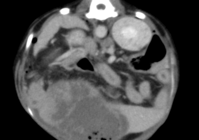 脾臓腫瘤破裂による腹腔内出血